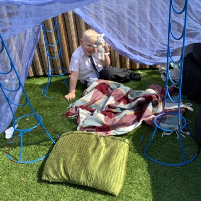 Our outdoor space is also a careful balance of Continuous Provision and enhancements, with lots of opportunities to develop our gross motor skills, as much of the equipment is bigger. We offer regular opportunities for children to chose to learn outdoors in this area everyday.